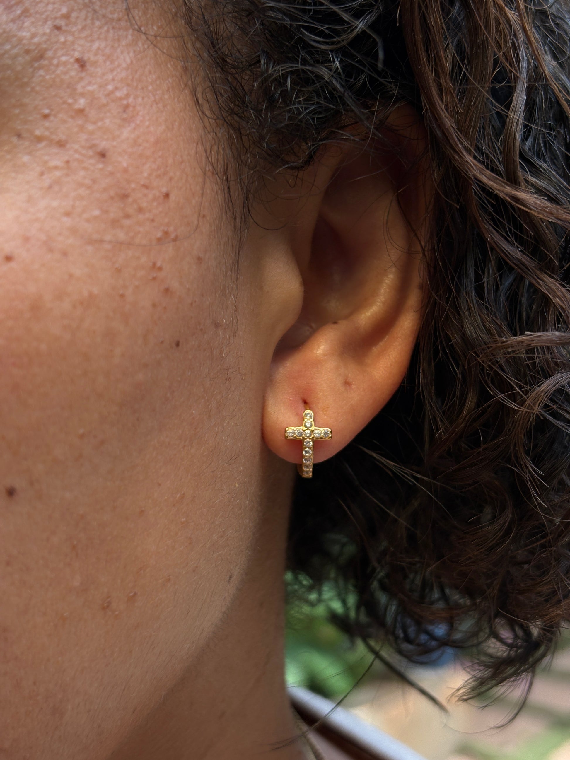 These beautifully crafted huggies feature a delicate cross design in radiant 18-karat PVD plated gold, symbolizing faith and grace. Perfect for everyday wear or to elevate any look with a subtle spiritual touch.